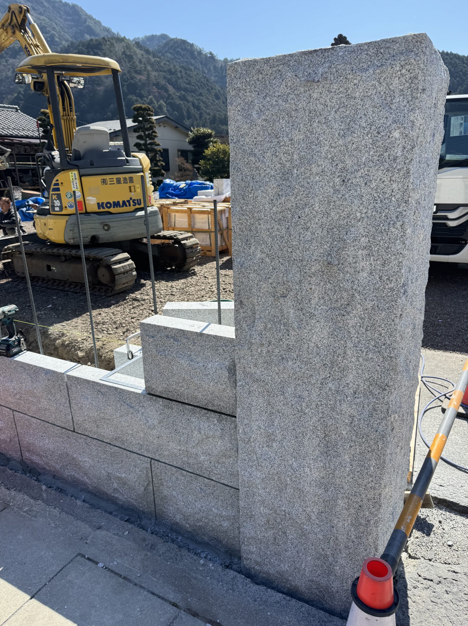 民間工事で御影石を使った石壁工事を施工しております。