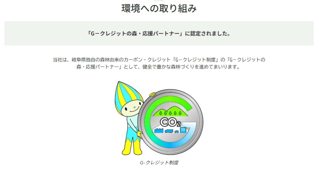 Gークレジットの森・応援パートナーに登録しました。 G-クレジットの購入や普及啓発を通して県の森林づくりを応援していくプロジェクトです。 詳細については当社ホームページ下部の「ミナモ」の付いたロゴをクリックしてください。